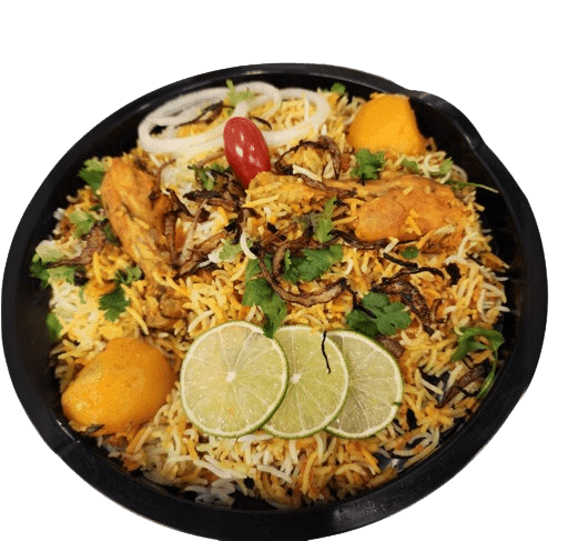 Indulge in the royal flavors of our signature Chicken Biryani, where succulent pieces of tender chicken are marinated in aromatic spices, layered with fragrant basmati rice, caramelized onions, and garnished with fresh herbs. Each bite is a harmonious blend of savory spices and tender meat, creating a symphony of taste that lingers on your palate.