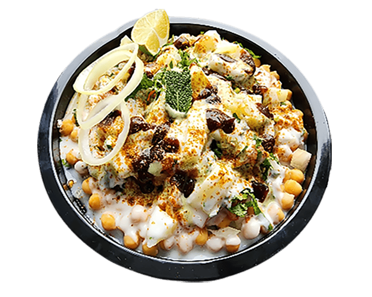 (Boiled chickpeas with onion tomatoes and coriander topped with tamarind and